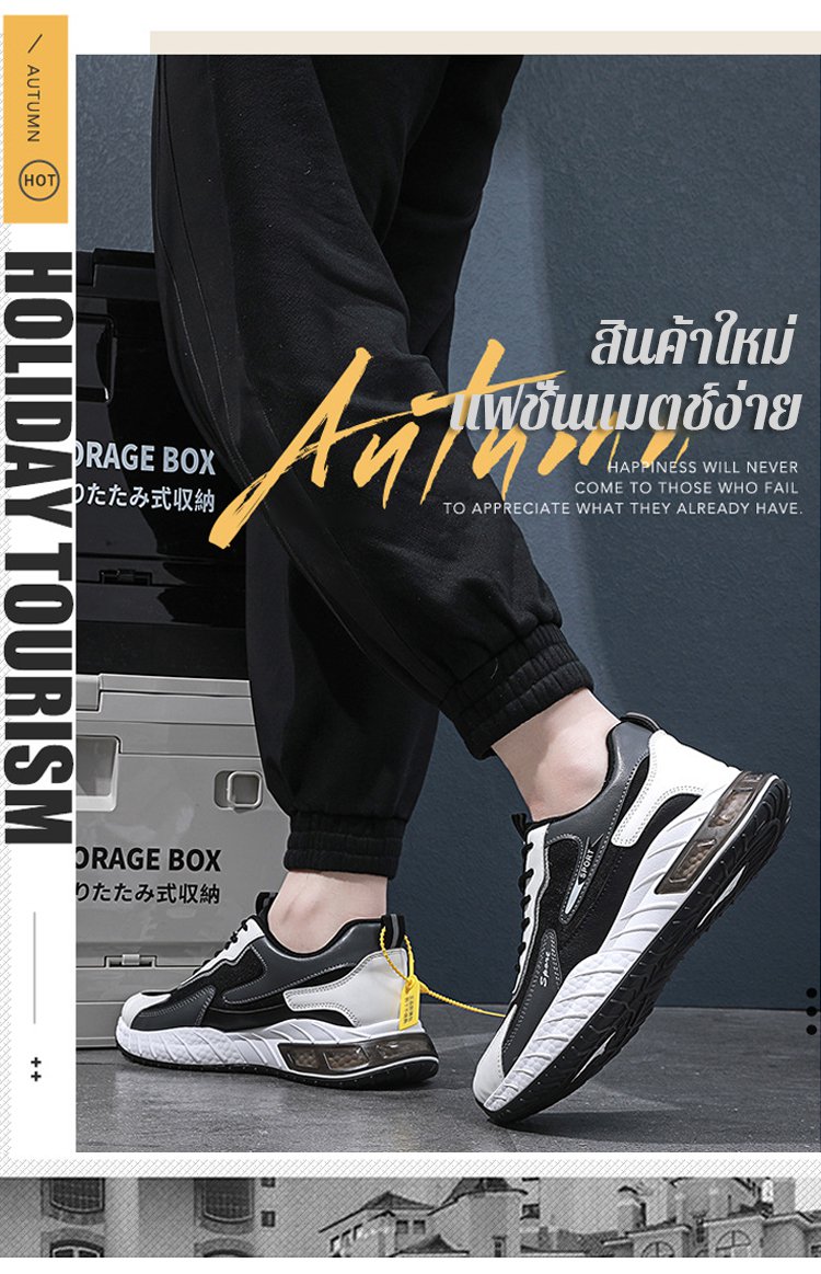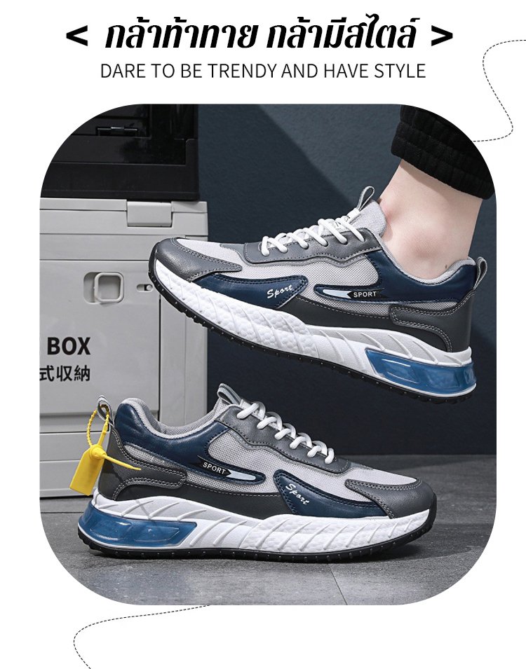 【เพิ่มความสูง 5CM】รองเท้ากีฬาพื้นยาง มีความยืดหยุ่นสูง